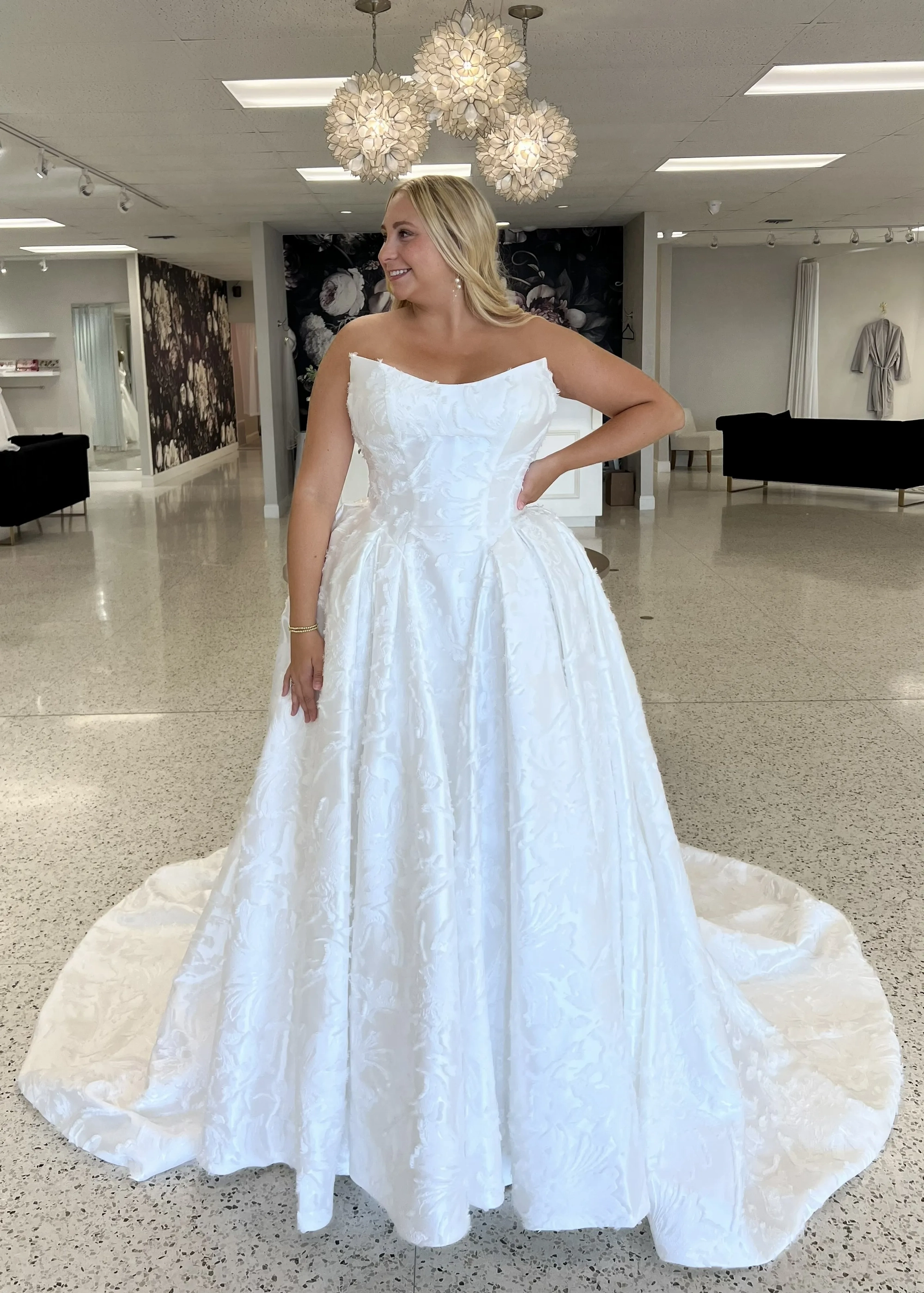 Please note that we are currently showcasing full collections from our designers. Not all gowns are available for immediate purchase. For availability inquiries, please call us.