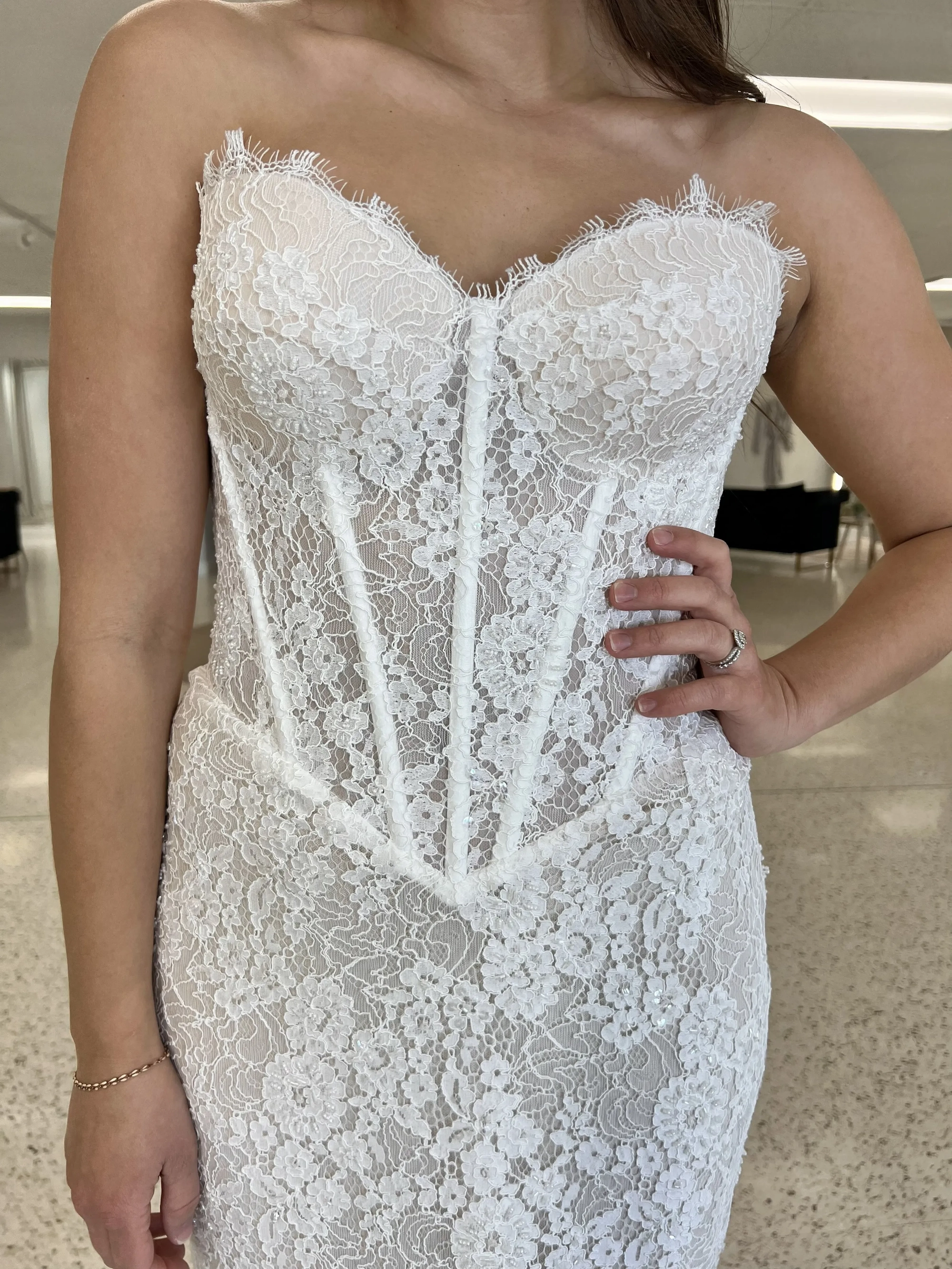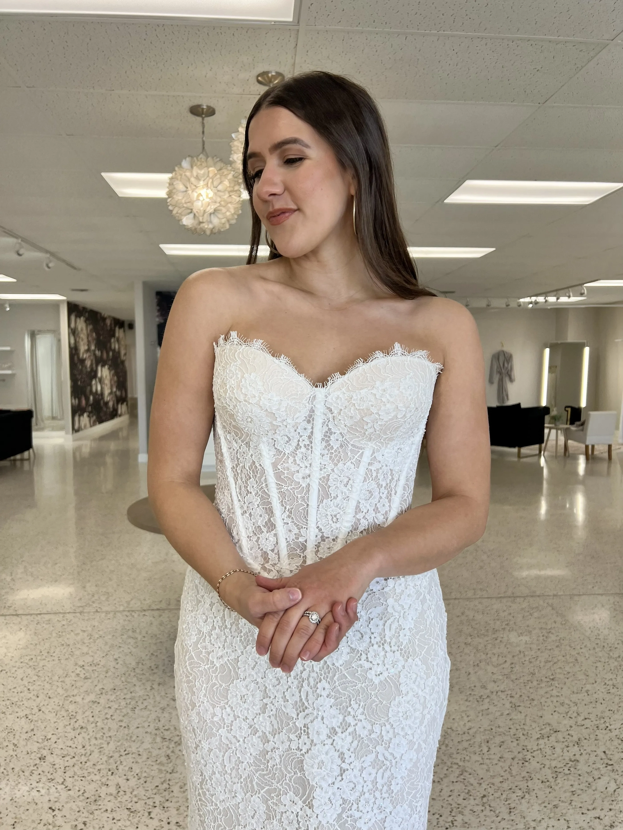 Please note that we are currently showcasing full collections from our designers. Not all gowns are available for immediate purchase. For availability inquiries, please call us.
