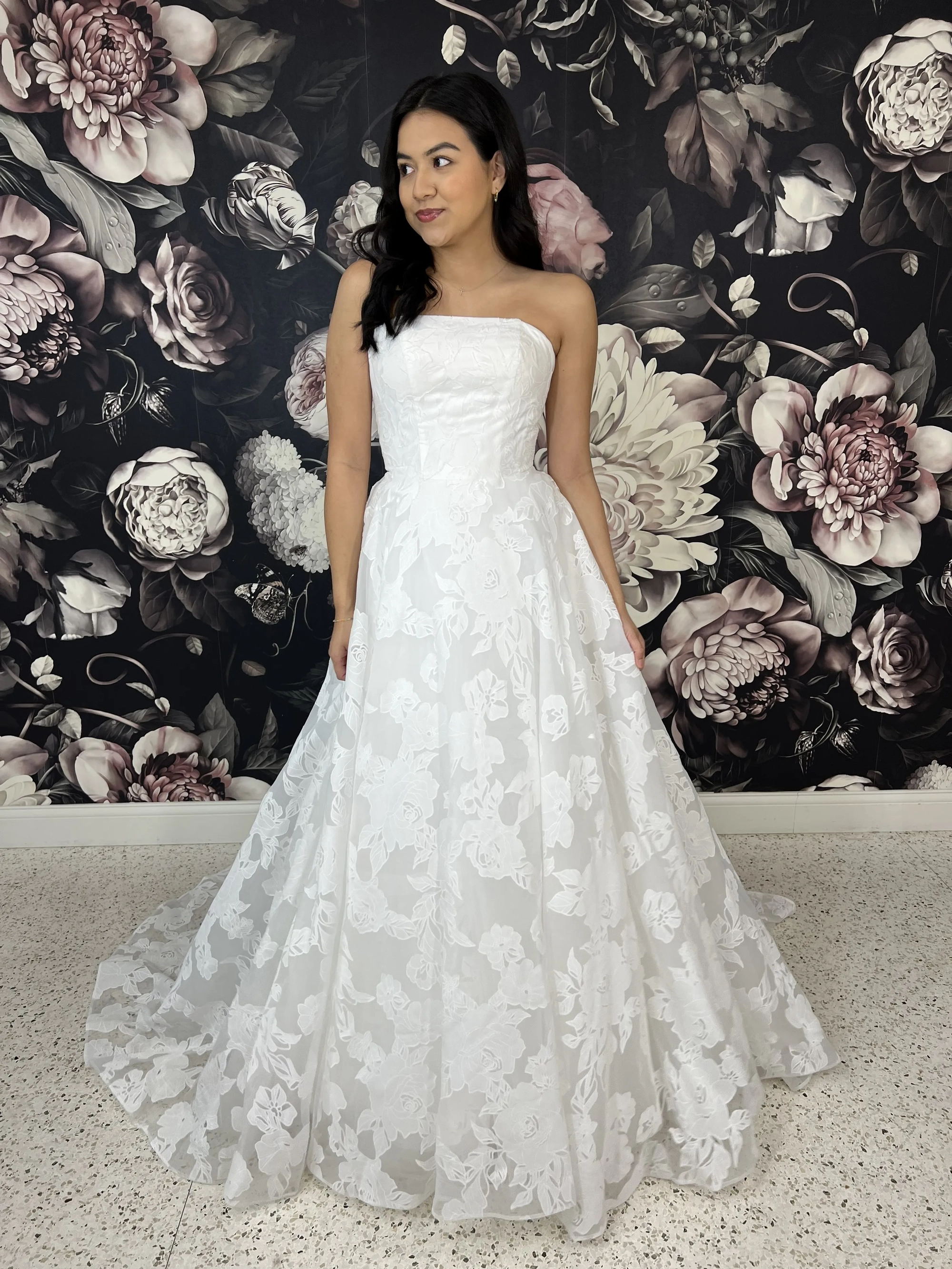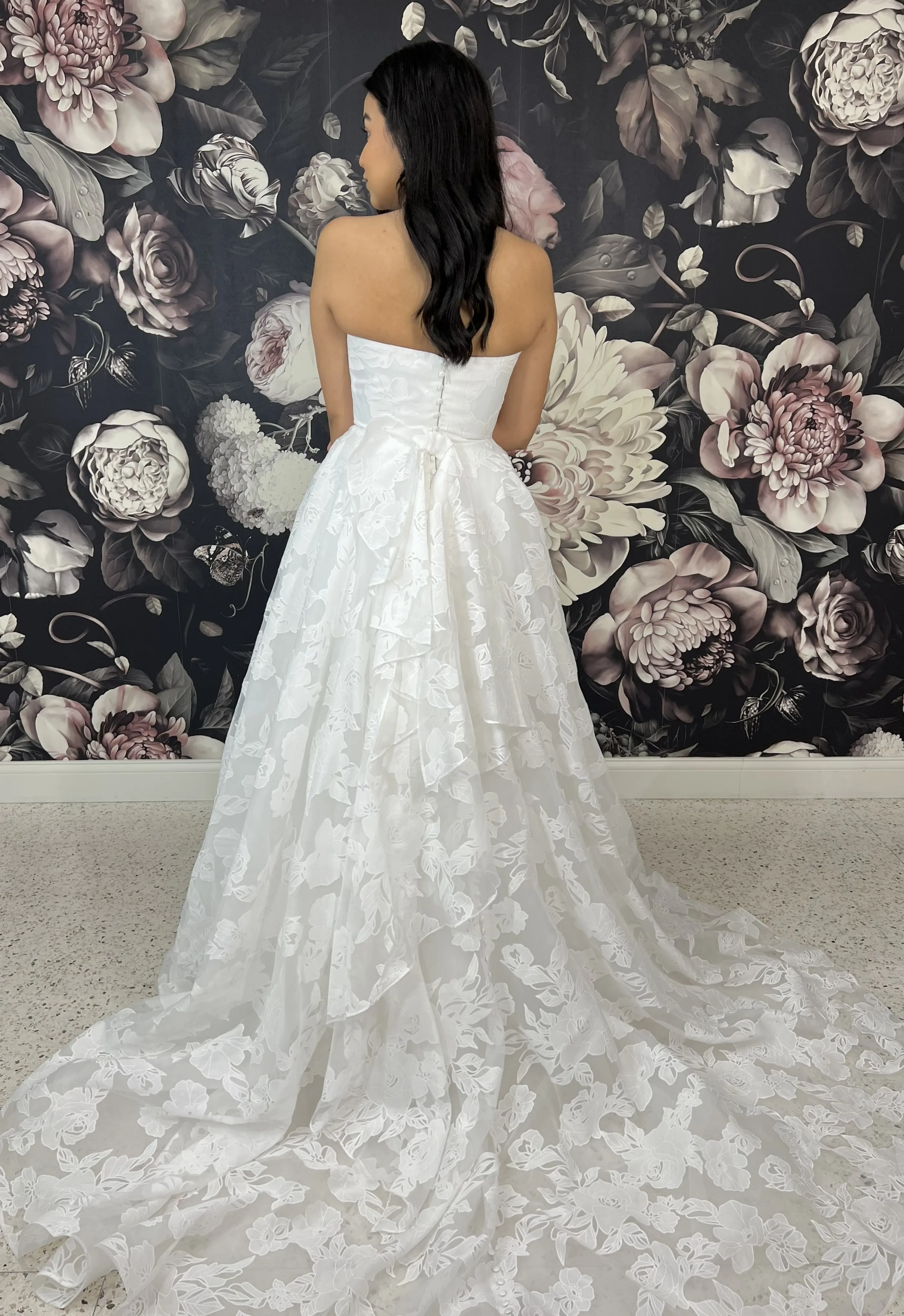 Please note that we are currently showcasing full collections from our designers. Not all gowns are available for immediate purchase. For availability inquiries, please call us.