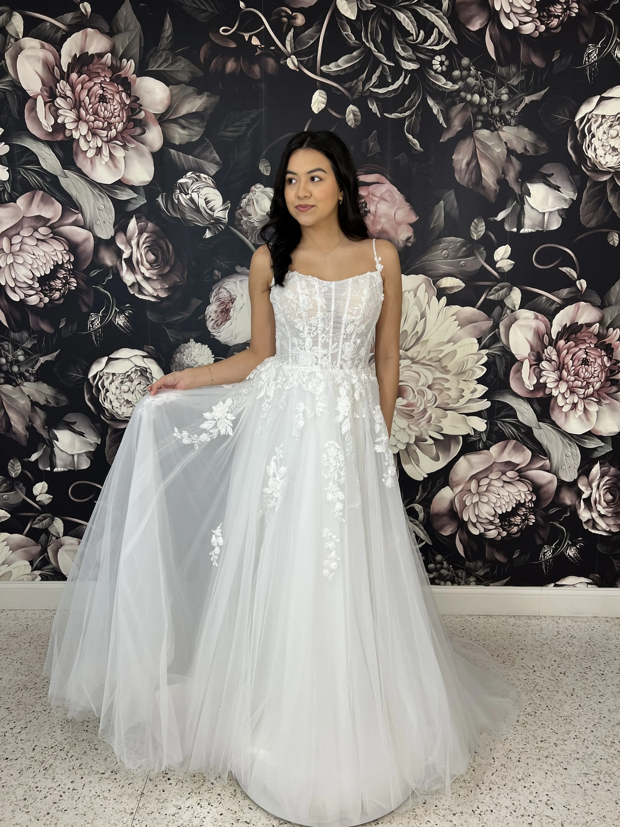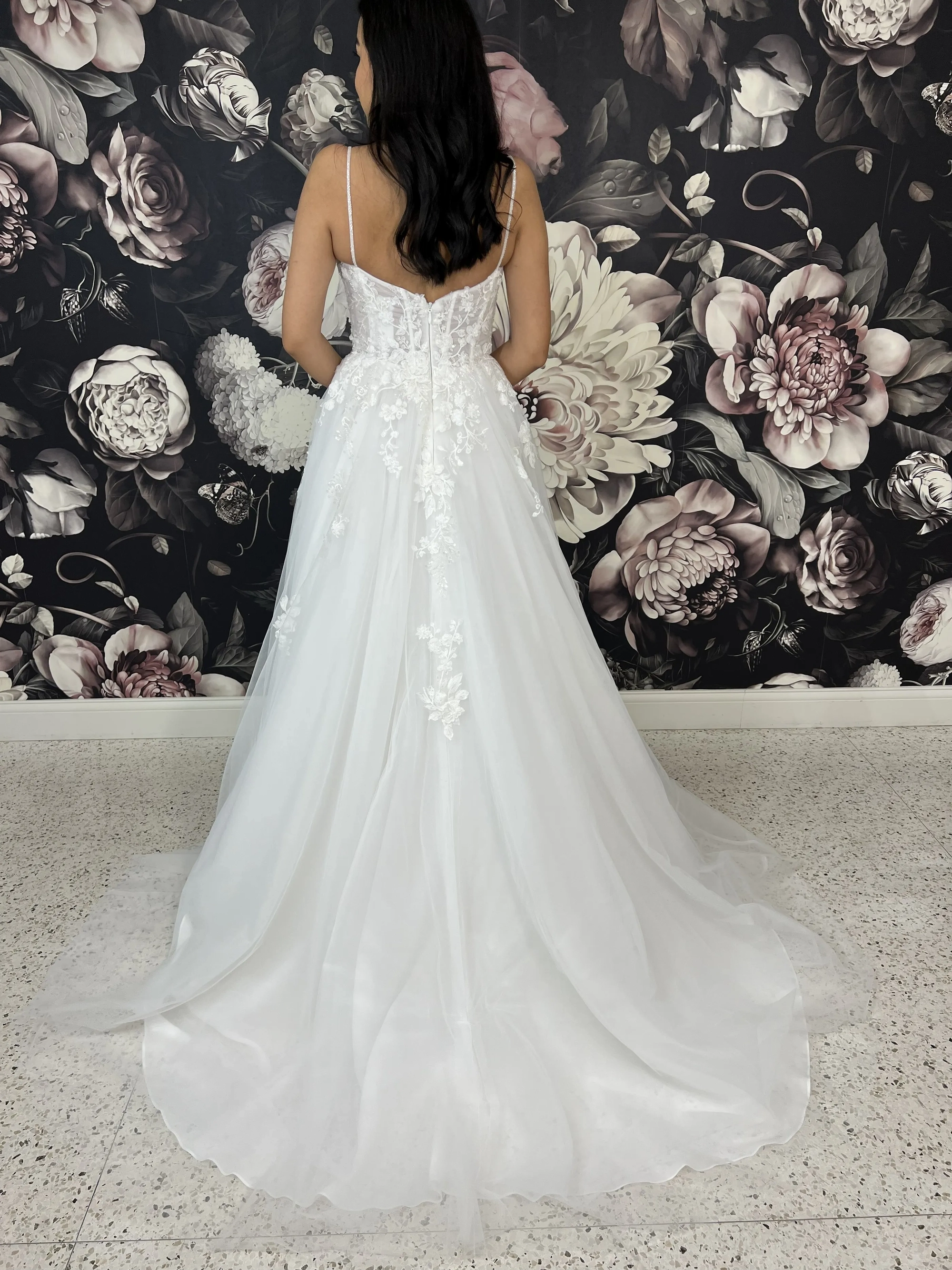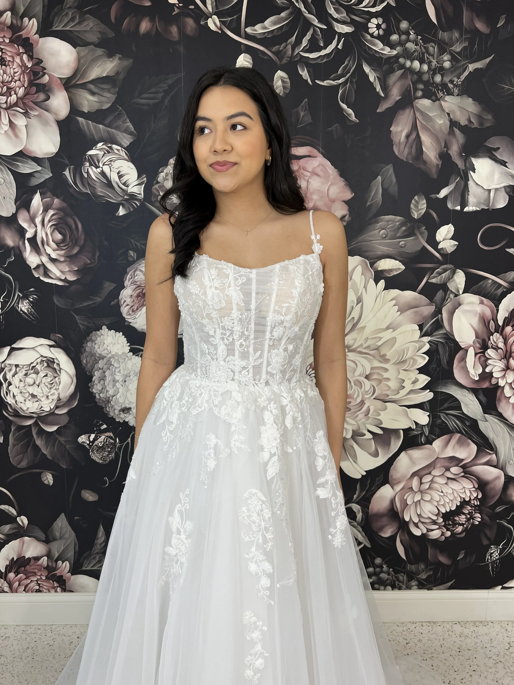 Please note that we are currently showcasing full collections from our designers. Not all gowns are available for immediate purchase. For availability inquiries, please call us.