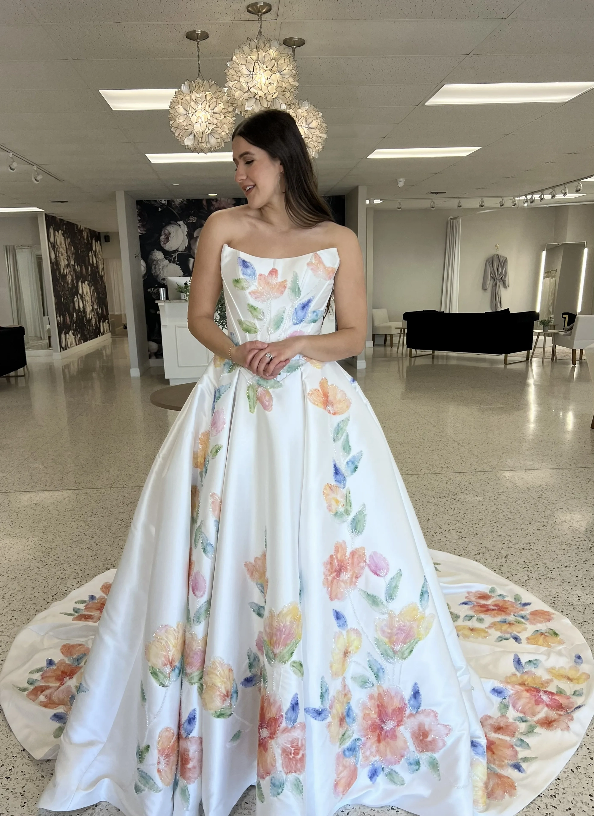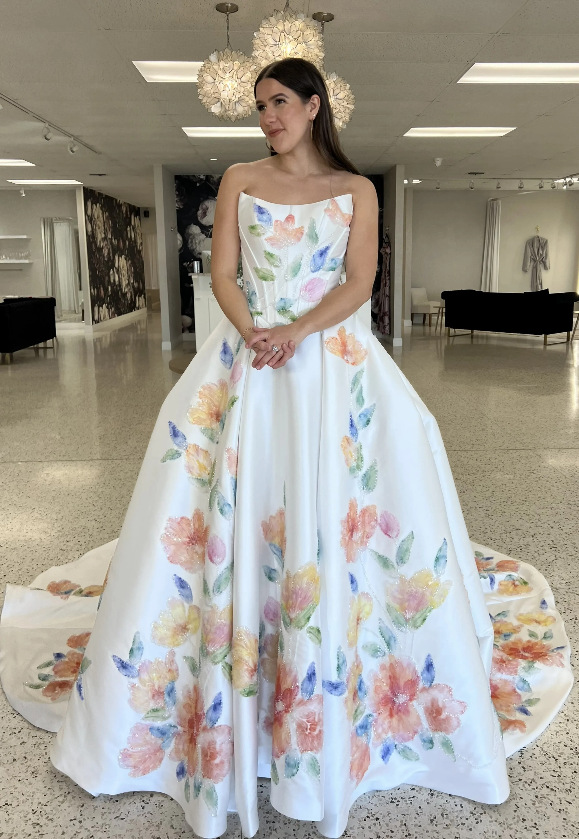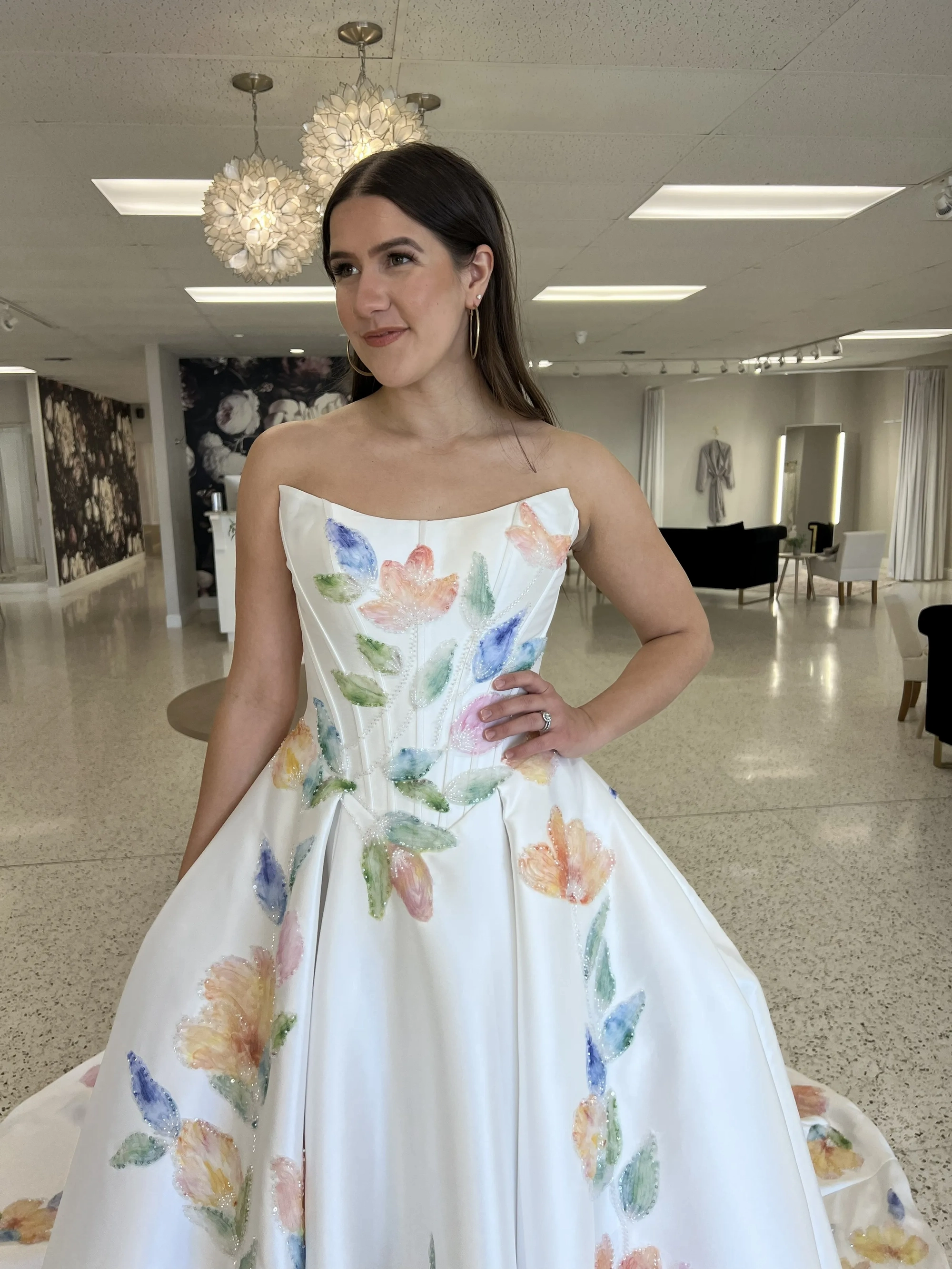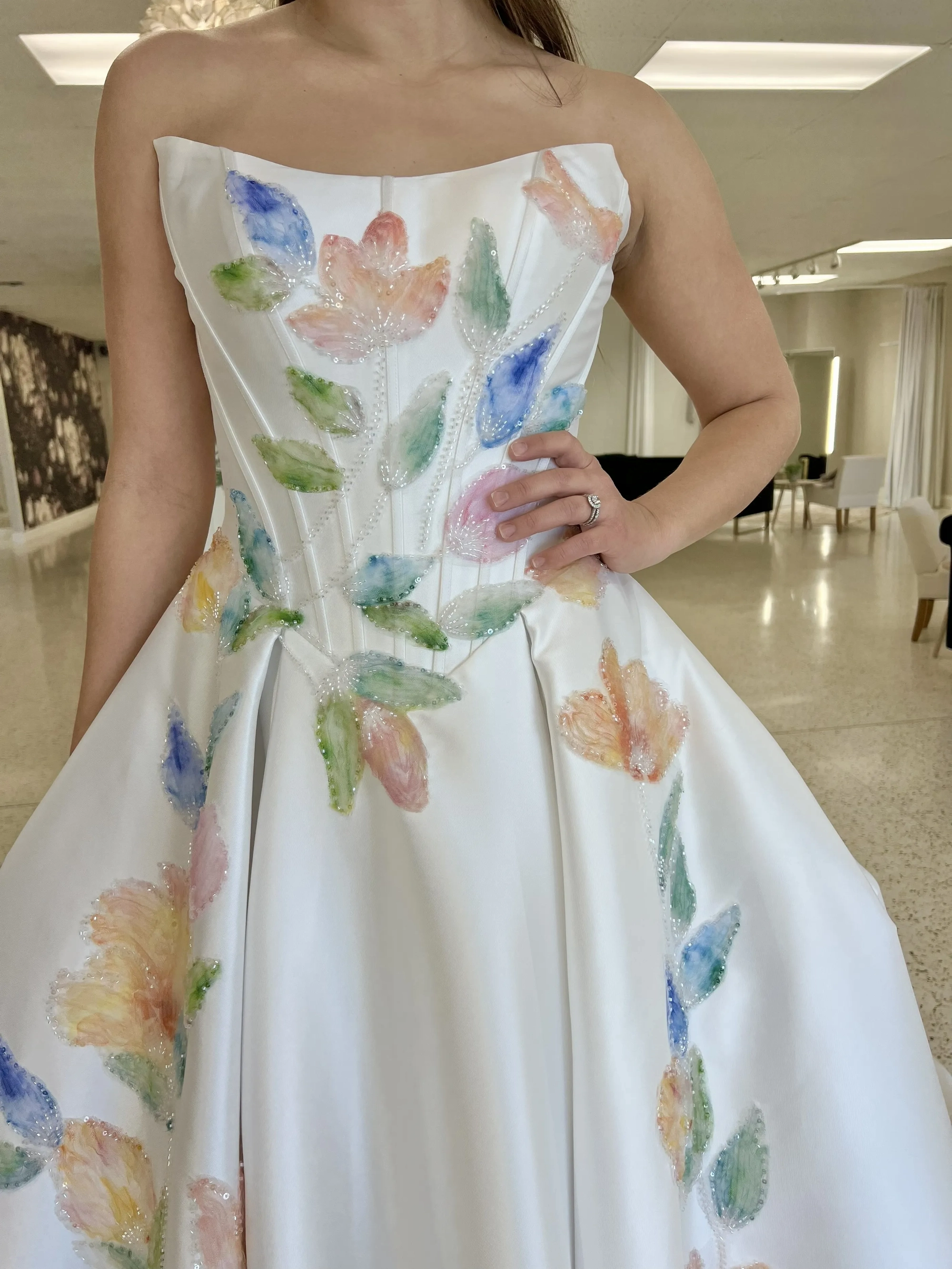 Please note that we are currently showcasing full collections from our designers. Not all gowns are available for immediate purchase. For availability inquiries, please call us.