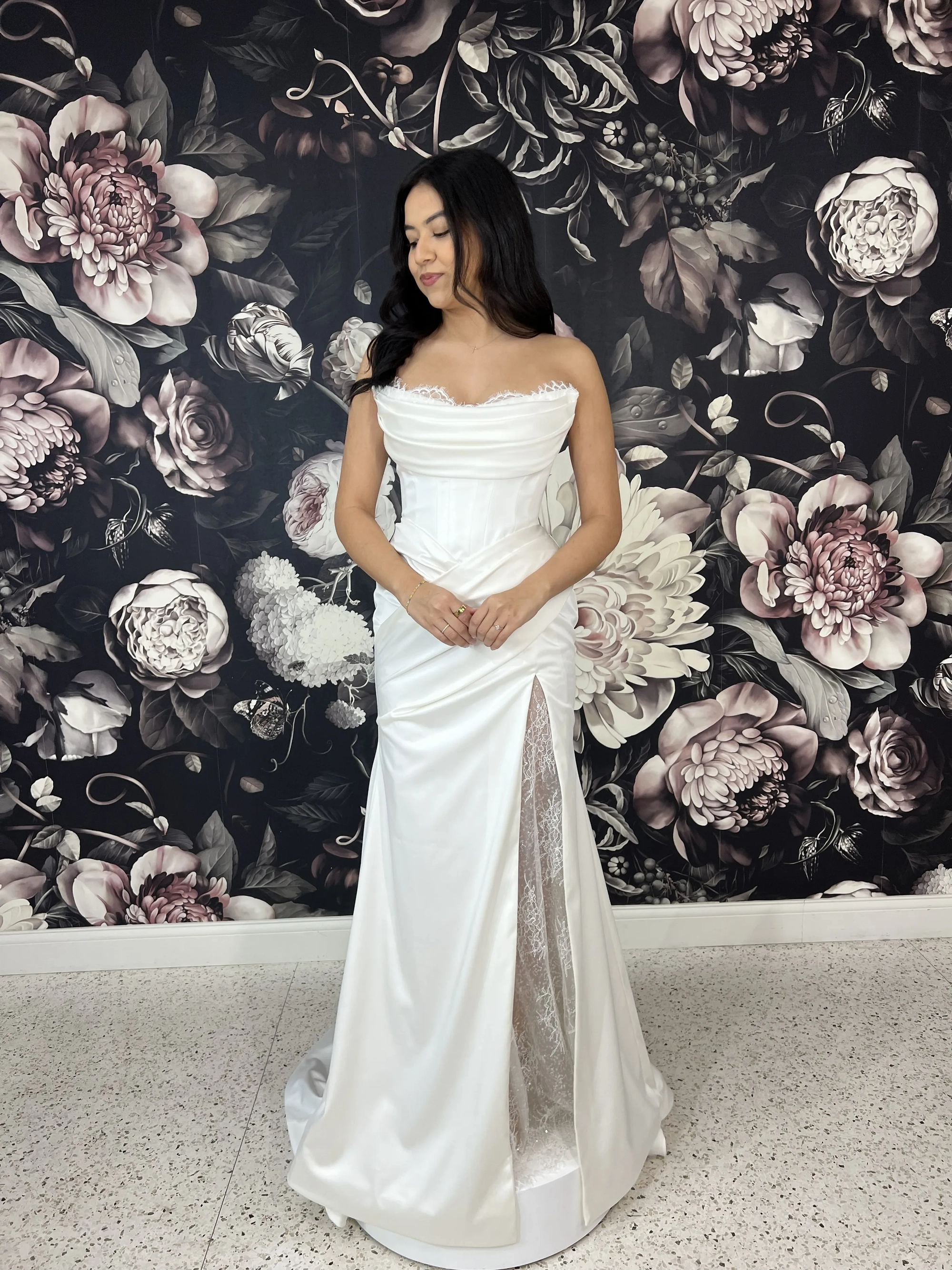 Please note that we are currently showcasing full collections from our designers. Not all gowns are available for immediate purchase. For availability inquiries, please call us.
