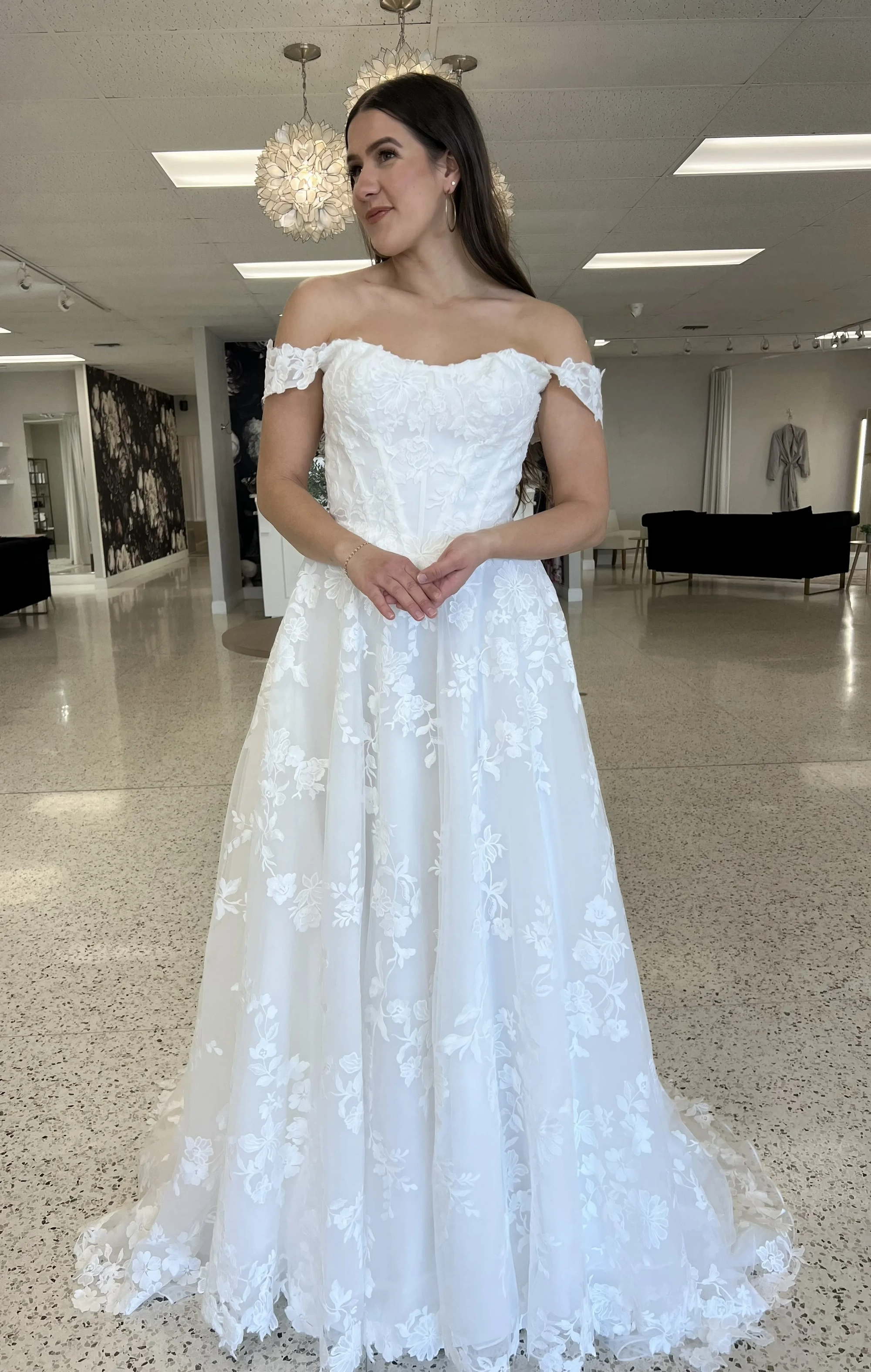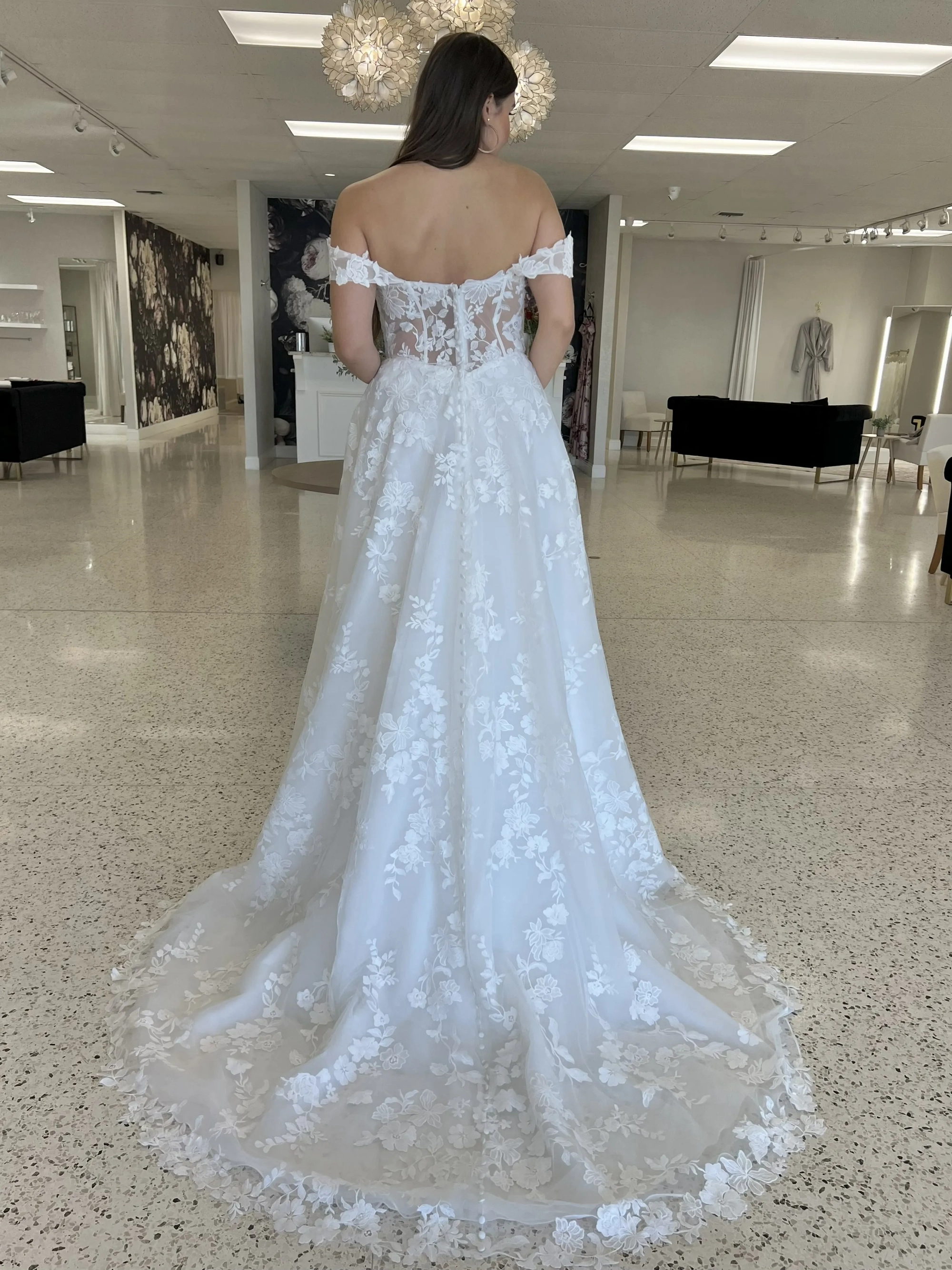 Please note that we are currently showcasing full collections from our designers. Not all gowns are available for immediate purchase. For availability inquiries, please call us.